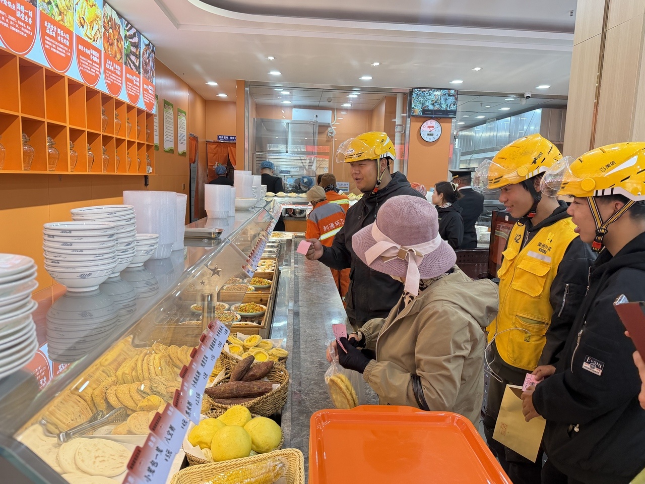 活动现场,利通区总工会向20位劳动者代表每人发放了50元的工会“爱新餐”券,同时推出了面向环卫工人、货车司机、外卖员、快递员等群体的优惠政策。该群体可在朔方社区食堂享用一日三餐,每餐享受9.3折优惠。
